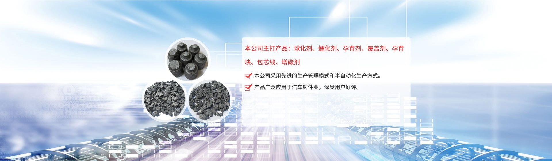 公司引進日本企業(yè)的生產(chǎn)管理模式,半自動化生產(chǎn)方式。目前生產(chǎn)能力:球化劑250T/月、孕育劑300T/月、鑄造相關(guān)品200T/月。為嚴格控制產(chǎn)品質(zhì)量,公司采用國內(nèi)的ICP-AES等離子體發(fā)射光譜儀對采購原